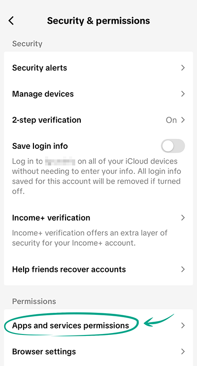 - This opens a list of services. Tap the service you want to revoke access from;