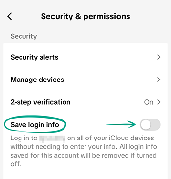 When you enter your login credentials in TikTok for iOS, the app automatically selects Save login info on your iCloud devices to log in automatically next time. This check box is easy to overlook. However, if your device lands in the wrong hands, or if you log in to TikTok from someone else's device, strangers might gain access to your account. To avoid that, disable password saving: