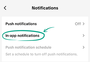 - Click In-app notifications;