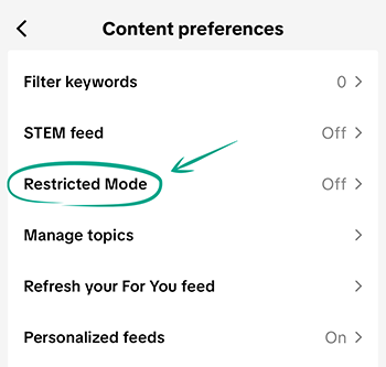 To keep anyone but you from disabling Restricted Mode, TikTok lets you set a passcode. This is especially helpful if you share your device with a child. Your kid won't be able to turn off content filtering.