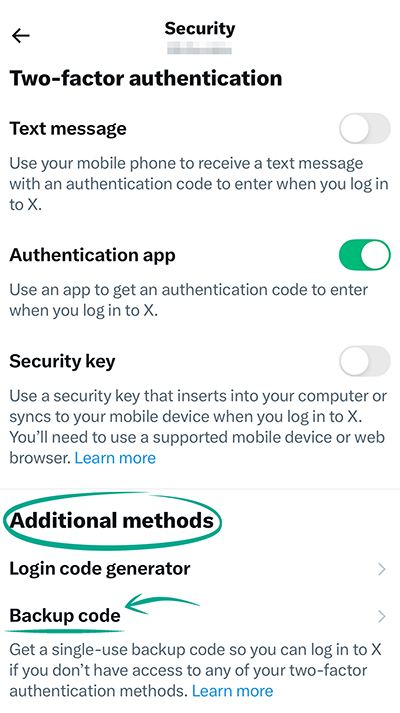 If you choose Authentication app, you'll be able to generate one-time codes both in the authentication app on your device and right in the X(Twitter) mobile app. Two-factor authentication will show a new option, Login code generator. Tapping this opens a new screen with a one-time code that's updated every 30 seconds.