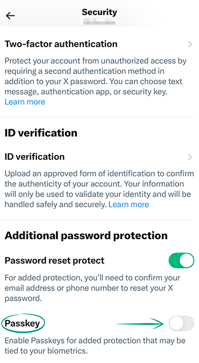 X(Twitter) supports both password-based and passwordless (passkey) authentication. Selecting this authentication method means you'll be using the built-in unlock options available on your device, such as fingerprint scanning. Biometric authentication methods simplify and speed up the sign-in process. Additionally, if you're not typing in your password manually, attackers cannot see or intercept it.