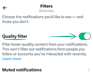 Downside: The filter does not apply to accounts that you follow or with which you recently interacted.