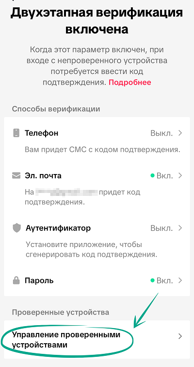 - Выберите пункт Двухэтапная верификация.