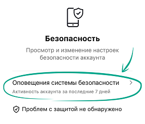- Нажмите еще раз Оповещения системы безопасности. В открывшемся окне вы увидите информацию о подозрительной активности за последние 7 дней. Если окно пустое, значит, все в порядке и подозрительной активности не обнаружено.
