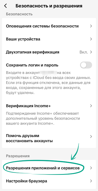 - Выберите Разрешения приложений и сервисов.