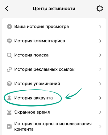 - Нажмите История аккаунта.