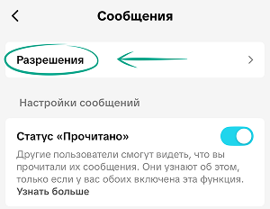- В разделе Разрешения выберите опцию Никогда.