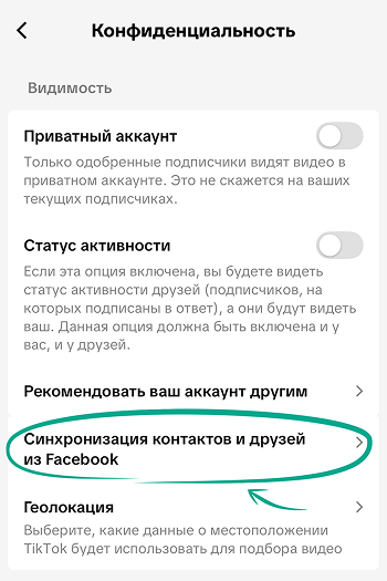 - Выберите Конфиденциальность.