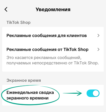 Помимо этого вы можете получать еженедельные сводки от TikTok в виде push-уведомлений.