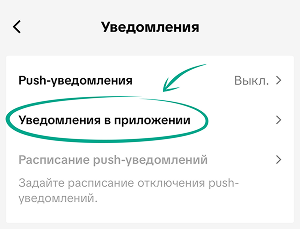 - Нажмите Уведомления в приложении.