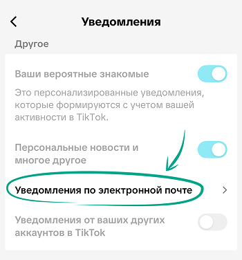 Если вы хотите оставить некоторые уведомления, в TikTok можно настроить, какие именно оповещения сервис будет вам присылать по электронной почте. Для этого: