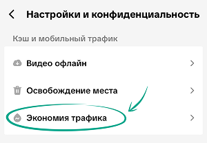 - Перейдите в раздел Экономия трафика.