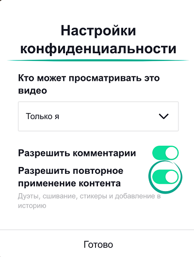 По умолчанию любой пользователь TikTok может повторно использовать ваш контент: снять дуэт или сшить свой ролик с вашим, а также сделать стикер из вашей публикации или добавить ее к себе в историю. Недоброжелатели могут использовать эту возможность, чтобы оскорбить или высмеять вас. Кроме того, ваше видео увидят все подписчики автора нового контента. Среди них могут быть те, с кем вы бы не хотели делиться своими публикациями.