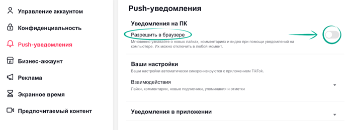 По умолчанию TikTok в приложении присылает уведомления о лайках и комментариях к вашим видео, рекомендациях, прямых эфирах и новых публикациях друзей. Постоянные оповещения могут раздражать и отвлекать от дел. Вы можете изменить настройки уведомлений в браузерной версии TikTok — изменения будут автоматически применены и на вашем телефоне.