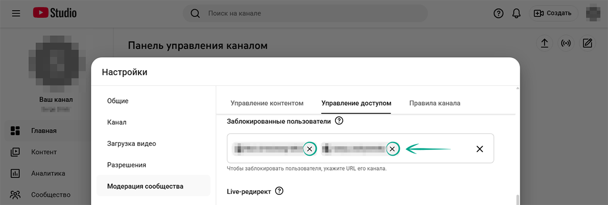 Другой способ сделать то же самое через настройки своего канала: